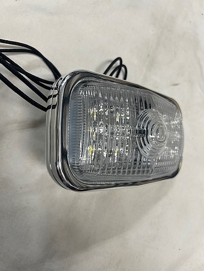ヴィンテージのフェラーリGT250のフォグレンズを再利用した長方形のライトです。